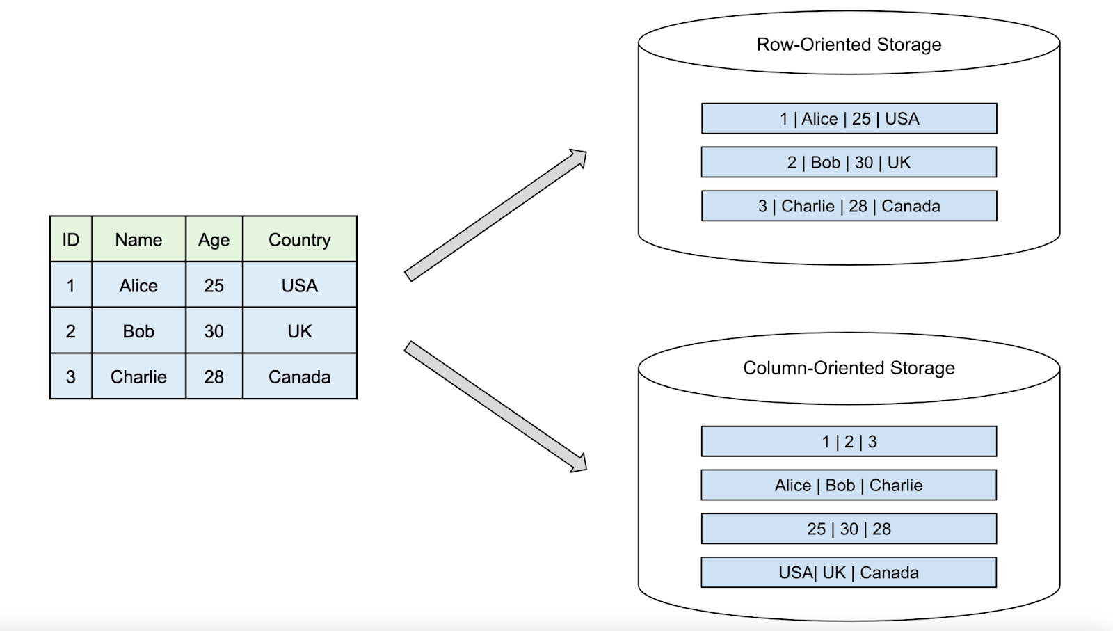 (Ben, 31, Amsterdam)being sequentially stored, just the column is stored near each other.